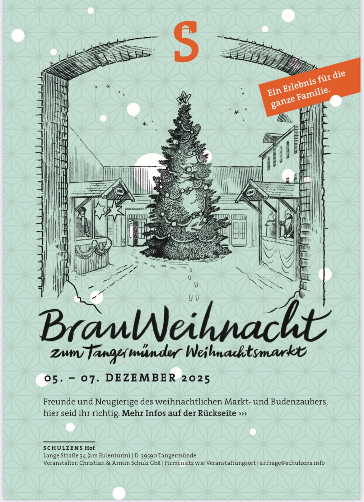 Sa, 29. Nov. | Adventsmarkt Lindstedt Ort: Gutshof LindstedtBeginn: 15.00 Uhr Informationen Sa, 6. Dez. | Brauweihnacht Tangermünde Wir spielen im beheizten Zelt ab 19.00 Uhr!Ort: Lange Straße 34 (am Eulenturm), Tangermünde Informationen Sa, 13. Dez. | Weihnachtsmarkt Stendal Wir stehen für euch auf der Bühne am Markt in kleiner Besetzung ab 19.30 Uhr. Informationen